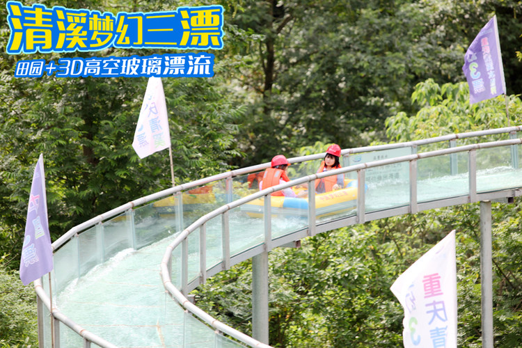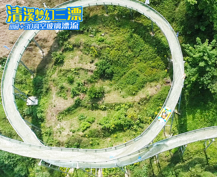 清溪梦幻三漂把自然河道,田园渠道,玻璃滑道